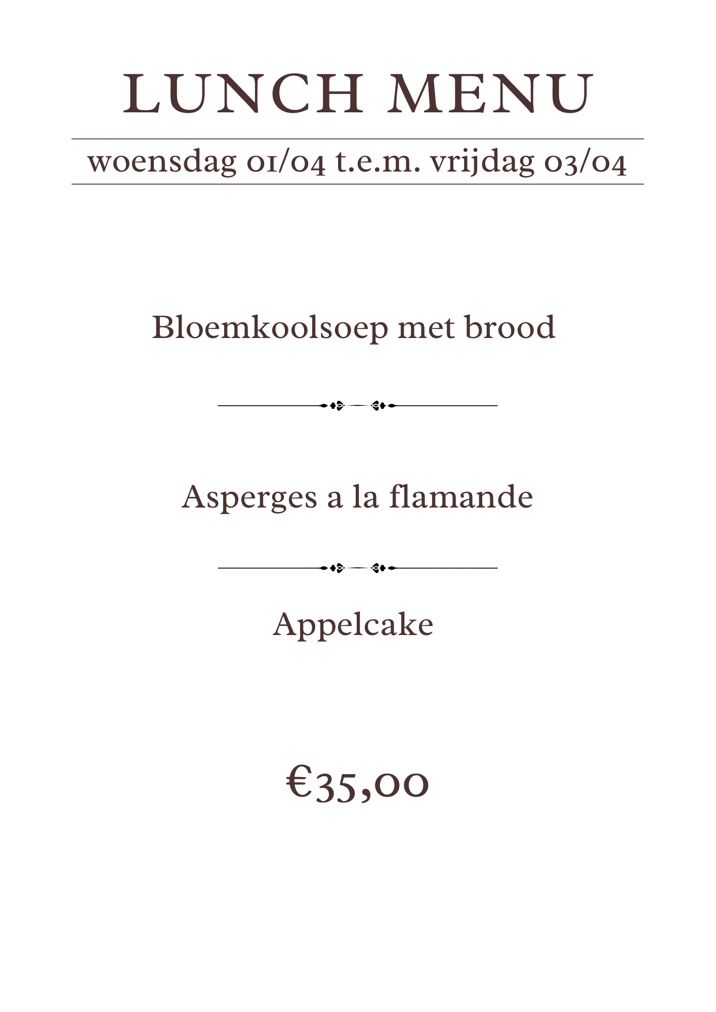Zondag 11u30 - 17u00